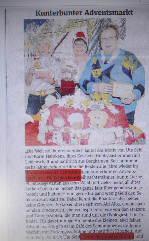 Der Adventsmarkt im Hermann-Görlitz-SZ begeisterte die Bewohner und Bewohnerinnen, sowie die Angehörigen. Es war ein großer Erfolg und wird auf jedem Fall im Jahr 2026 wiederholt.